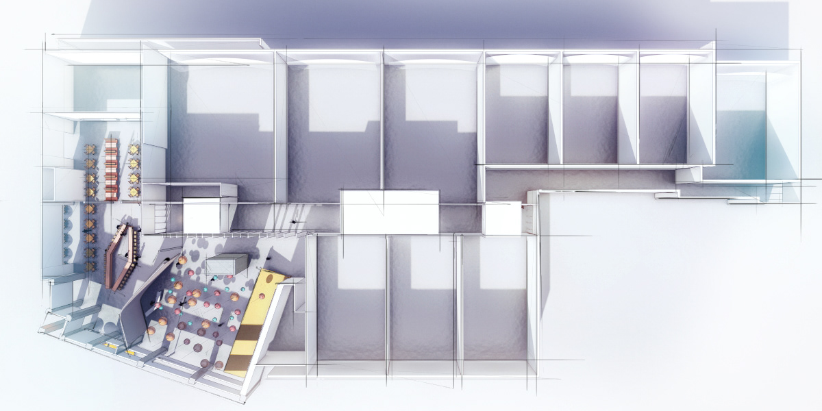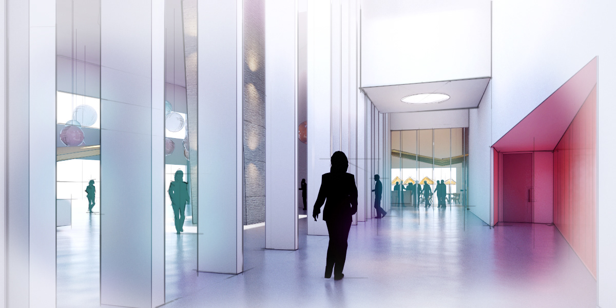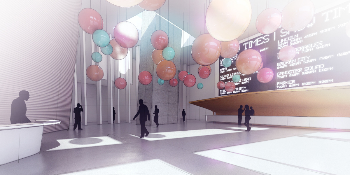 These concept renders were developed under a very tight time frame - 2 1/2 days for all the images. The concept design in 3d was developed days earlier within a 4 hour charrette to nail down some of the spatial ideas of a lobby, theatre hallway and restaurant space in which various camera views were chosen. From those views 3 of the best views were chosen to tell the story and be taken further for presentation. I developed a sketchy and ethereal style for presentation to convey the ideas without making it feel too solid and figured out - as fully rendered 'photo real' images tend to convey.