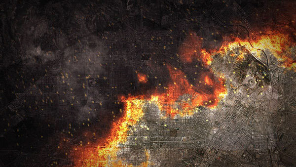 The next version of the logo reveal includes a sound mix with music from The Used, as well as some other various clips of wind, fire and static distortion. The clip was extended slightly to allow for the logo to degrade and transition out allowing for a loop of the addition of other logo treatments for use as a looping video for projector display.